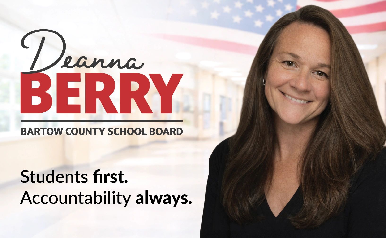 I’m Deanna Berry, and I’m running for the Bartow County School Board, District 3. My family has called this community home for nearly 20 years, and both of our children graduated from Cass High School.